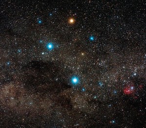 Um dos objetos mais interessantes no Cruzeiro é NGC4755, um aglomerado de estrelas conhecido como “Caixa de Joias”. Esse aglomerado aparece na imagem acima como um borrãozinho claro ao lado da segunda estrela mais brilhante de Crux. Vejam a imagem abaixo e confiram o motivo desse nome sugestivo.